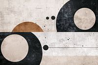 Deze stijlvolle wanddecoratie combineert strakke lijnen met abstracte cirkels in een monochroom kleurenpalet, variërend van diepe zwarten en grijzen tot warme beige en bruine tinten. Het kunstwerk is geïnspireerd door de Japandi-stijl die minimalisme en functioneel design omarmt. Deze print zou naadloos aansluiten bij zowel moderne als rustiek ingerichte interieurs en kan een gevoel van rust en orde brengen in elke ruimte. Perfect voor een woonkamer, kantoor, of een rustige keuken, het zal ongetwijfeld een centraal punt van conversatie zijn.