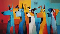 Het abstracte honden op een rij panorama schilderij is perfect voor liefhebbers van moderne kunst die hun interieur willen verrijken met iets origineels. Een kunstwerk dat niet alleen de muur siert, maar ook persoonlijkheid toevoegt aan je woon- of werkruimte. Een echte eyecatcher voor wie van kunst met karakter houdt.