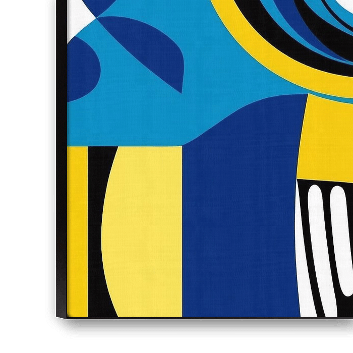 Deze opvallende en moderne digitale illustratie van een uil springt in het oog met levendige kleuren en dynamische vormen. Het ontwerp combineert abstracte vormen en gedurfde lijnen, waarbij geel en blauw de belangrijkste kleuren zijn, afgewisseld met zwarte accenten die voor contrast zorgen. Het werk ademt een moderne stijl en past perfect in een eigentijds interieur, waar het als blikvanger kan dienen. Ideaal voor liefhebbers van abstracte kunst en dierenportretten, dit kunstwerk voegt een levendige sfeer toe aan elke ruimte.