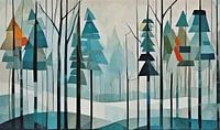 Abstracte impressie - winterbos in pastelkleuren is digitaal gemaakt.