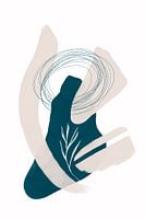 Modern abstract ontwerp in speelse, naïeve penseelstreken en vormen. Schilderen in aangename kleuren. Het contrast creëert een heerlijke spanning tussen de warme aardetint en het koudere blauw. Experimenteel decoratief kunstwerk met minimalistische elementen.