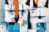 Dit unieke kunstwerk toont een abstracte interpretatie van katten, waarbij dynamische lijnen en vormen de energie en mysterie van deze fascinerende dieren vastleggen. De levendige kleurencombinatie van wit, zwart, oranje, blauw en grijs creëert een visueel aantrekkelijke compositie die zowel krachtig als elegant is. Dit schilderij is…