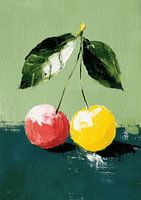 Koop dit schilderij Abstracte kersen op groen van Niklas Maximilian als reproductie geprint op canvas, aluminium dibond, (ingelijste) fotoprint, behang en ArtFrame. Voor jou op maat geprint in Fine-Art kwaliteit.