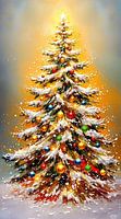 Een abstracte interpretatie van een kerstboom verheft zich voor de blik van de kijker en ziet er zowel vertrouwd als betoverend uit. De met sneeuw bedekte takken lijken niet zozeer geschilderd als wel zachtjes ingeademd, terwijl de kleurrijke kerstballen baden in warme, feestelijke nuances. Tussendoor gloeien felgele lampjes als kleine…