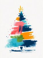Deze moderne interpretatie van een kerstboom spat van het doek met levendige kleuren en dynamische penseelstreken. In plaats van een traditionele boom zien we een speelse compositie van turquoise, koraalroze, oranje, groen en diepblauw, met bovenaan een stralende gele ster. De losse verfstructuur geeft het werk een gevoel van beweging en vrijheid, alsof de kleuren zelf dansen op het doek. Ondanks de abstractie is de herkenning direct aanwezig – het straalt warmte, licht en feestelijkheid uit. De eenvoud van de witte achtergrond laat de kleuren nog sterker spreken. Dit kunstwerk ademt de vrolijke energie van de feestdagen, zonder clichés, maar met een eigentijdse twist. Perfect voor wie houdt van modern design, kleur en minimalistische expressie met karakter.