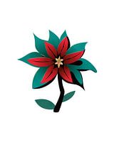 Een bloem in een minimalistisch-abstracte stijl, gebaseerd op kerststerren, waarvan ik de typische kleuren rood en groen geleend heb, naast de typische vorm van de bloembladeren. De illustratie maakt deel uit van een serie van enkele bloemen, elk geïnspireerd op een echte bloem.