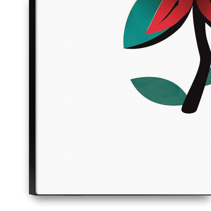 Een bloem in een minimalistisch-abstracte stijl, gebaseerd op kerststerren, waarvan ik de typische kleuren rood en groen geleend heb, naast de typische vorm van de bloembladeren. De illustratie maakt deel uit van een serie van enkele bloemen, elk geïnspireerd op een echte bloem.