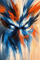 Een krachtig en dynamisch schilderij dat de aandacht trekt met zijn felle kleuren en expressieve lijnen. Dit kunstwerk straalt energie en emotie uit, ideaal voor moderne interieurs die een gedurfde uitstraling willen. Het ontwerp combineert intense blauwtinten met vurige oranje accenten, waardoor een gevoel van beweging en kracht wordt…