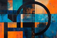 In een betoverend samenspel van diepblauw en levendig oranje tart een gedurfd geometrisch patroon perfecte uniformiteit. De dynamische lijnen en contrasterende kleuren geven dit kunstwerk een energieke uitstraling die aanzet tot levendige gesprekken. Ideaal geplaatst in de woonkamer wordt het een blikvanger en inspireert het elke…