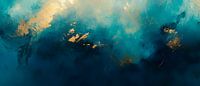 Een harmonieuze fusie van diepblauw en gouden accenten creëert een rustgevende, bijna dromerige sfeer. Deze abstracte compositie nodigt uit om te dromen en geeft de kamer een elegant tintje. Ideaal voor de woonkamer, waar het een gesprek kan stimuleren en een ontspannen sfeer kan creëren.