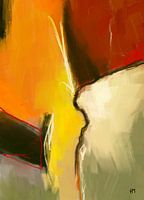 Abstracte vormen in dezelfde kleuren als het schilderij met de glazen vazen, eventueel als bijpassende set. Te vinden onder het kopje 'set met rood, geel en oranje. Kleur intensieve contrastrijke afbeelding van warme kleuren. Decoratieve kunst. Expressief schilderij, modern schilderij. Schilderij met kleuren die passie uitstralen, warme gloedvolle tinten, zonnige tinten.