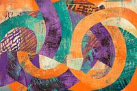 Levendige kleuren dansen in harmonieuze bogen, terwijl fascinerende texturen speels met elkaar interageren. De levendige paarse en oranje tinten geven de kamer een energieke impuls, ideaal voor een creatief huis. Perfect in de woonkamer om gesprekken te stimuleren of in het kantoor om inspiratie op te doen, dit kunstwerk zit vol leven en expressie.