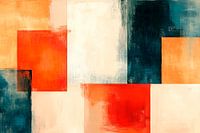 Heldere kleurencombinaties in aardrood, zacht beige en diep blauw dansen harmonieus in een geometrisch samenspel. De dynamische opstelling straalt energie en creativiteit uit, ideaal voor een inspirerend kantoor of een levendige leefruimte. Hier wordt elke blik een nieuwe stimulans voor gedachten en gesprekken!