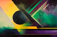 Een harmonieus samenspel van levendige kleuren en geometrische vormen trekt onmiddellijk de aandacht. De sterke groene tinten en zachte gele nuances smelten samen met dynamische lijnen die leven en beweging suggereren. Deze moderne compositie is ideaal voor een woonkamer, waar het frisse energie en creatieve inspiratie uitstraalt.