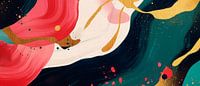 Levendige kleuren dansen harmonieus op het doek en nodigen het oog uit voor een reis. Levendig rood en zacht goud smelten samen met diepgroen om een uitnodigende sfeer te creëren. Dit kunstwerk voegt een vloeiende lichtheid toe aan elke woonkamer en inspireert tot creatieve gesprekken. Perfect voor een plek van ontmoeting en welzijn.