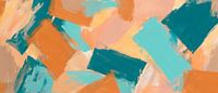 Levendige kleurspatten in warme terracotta tinten en koele aqua nuances creëren een harmonieuze balans van energie en rust. Deze dynamische compositie trekt het oog en de geest, perfect voor een moderne woonkamer of een inspirerend kantoor waar creativiteit kan gedijen. Het voegt een frisse, uitnodigende sfeer toe aan elke ruimte.