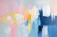 Zachte roze, gele en blauwe tinten smelten samen in een harmonieus samenspel en geven de kamer een rustgevende sfeer. De abstracte vormen stimuleren de verbeelding en moedigen creativiteit aan. Perfect voor een woonkamer of kantoor waar inspiratie en sereniteit hand in hand gaan. Een echte blikvanger!