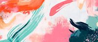 Levendige kleurstromen in gedurfd oranje en zachte turquoise tinten creëren een dynamische sfeer die onmiddellijk in het oog springt. De losse penseelstreken roepen een vleugje creativiteit en lichtheid op, perfect voor een moderne woonkamer of een inspirerend kantoor. Een blikvanger die zorgt voor positieve energie en een vleugje vrijheid.