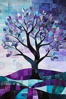 Dit opvallende ontwerp toont een kleurrijke abstracte boom in een betoverend landschap. Met een mix van tinten paars, blauw en turquoise straalt het een gevoel van rust en creativiteit uit. Het gebruik van geometrische patronen en gelaagde texturen geeft het ontwerp een unieke en moderne uitstraling. Perfect voor het toevoegen van een…
