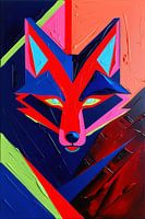 Dit levendige kunstwerk toont een gestileerde vos, gevormd door dynamische geometrische lijnen en felle kleuren. De gedurfde combinatie van rood, blauw, roze en groen creëert een opvallend contrast dat direct de aandacht trekt. De abstracte stijl geeft het schilderij een moderne en speelse uitstraling, ideaal voor een ruimte waar kleur en energie centraal staan. De vos, symbool voor sluwheid en intelligentie, wordt op een eigentijdse manier weergegeven, wat het ontwerp perfect maakt voor liefhebbers van dieren en moderne kunst. Hang dit unieke stuk in je woonkamer, kantoor of creatieve ruimte om een statement te maken en een speelse sfeer toe te voegen aan je interieur.