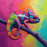 Abstracte kleurrijke kameleon van Marieke van Rijsewijk