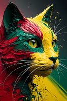 Dit opvallende kunstwerk combineert felle kleuren en een abstracte stijl om een unieke interpretatie van een kat te creëren. Het gebruik van dikke verfstreken in levendige tinten zoals geel, groen en rood, maakt dit ontwerp een eyecatcher voor elke ruimte. De verf lijkt dynamisch en levendig te bewegen over het canvas, waardoor het werk een gevoel van energie en creativiteit uitstraalt. Dit maakt het een perfecte keuze voor moderne interieurs die op zoek zijn naar een stukje kunst dat niet alleen visueel opvalt, maar ook een speelse en expressieve sfeer brengt. Het ontwerp past goed in ruimtes zoals woonkamers of kantoren waar een artistieke touch gewenst is.