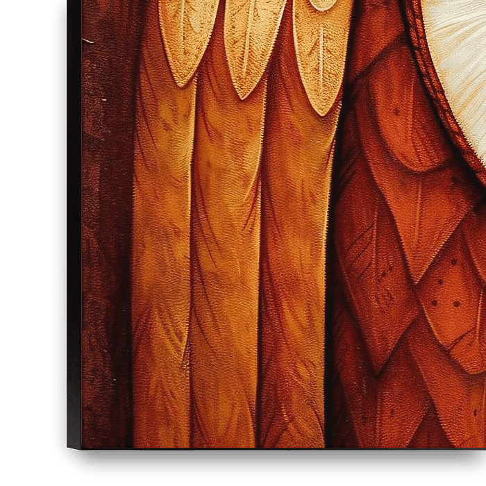 Dit prachtige schilderij toont een abstracte weergave van een uil, perfect om een vleugje mystiek en schoonheid aan je interieur toe te voegen. De warme tinten van oranje, bruin en geel creëren een uitnodigende sfeer die elke ruimte tot leven brengt. Met de fijn gedetailleerde vleugels en het serene gezicht van de uil, straalt dit…