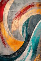 Caleidoscopische golven van kleur vloeien harmonieus over een gedempt achtergrondoppervlak en creëren een gevoel van beweging en energie. De dynamische roodtinten en koele blauwtinten creëren een betoverend contrast dat meteen in het oog springt. Dit kunstwerk is ideaal voor de woonkamer, brengt levendige inspiratie in elke kamer en nodigt uit om te blijven hangen.