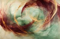 Een fascinerend samenspel van warme aardetinten en zachte aquamarijnkleurige golven betovert de kijker. De dynamische, vloeiende lijnen creëren een gevoel van beweging en harmonie dat een aangename sfeer creëert. Perfect voor de woonkamer, voegt het een elegante, ontspannen touch toe aan elke kamer.
