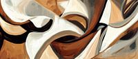 Zachte golven van aardetinten en elegant wit smelten samen tot een harmonieuze dans die tegelijkertijd rust en dynamiek uitstraalt. Deze kunstige compositie straalt een tijdloze elegantie uit en is ideaal voor een stijlvolle woonkamer, waar het de ruimte vult met een gevoel van warmte en creativiteit.