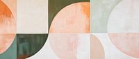 Harmonieuze kleurtonen en zachte geometrische vormen vormen samen een kunstwerk dat rust en elegantie uitstraalt. De mix van gedempt groen, warme aardetinten en zachte pasteltinten creëert een uitnodigende sfeer. Ideaal voor de woonkamer, waar het fungeert als een betoverende blikvanger en een ontspannen, creatieve stemming bevordert.