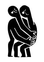 Een abstracte illustratie in zwart-wit van een menselijke knuffel. Deze illustratie is er een uit een serie van twee.