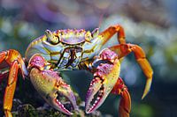 Breng een vleugje natuur naar je slaapkamer met deze levendige afbeelding van een krab op een rots. De felle kleuren en abstracte vormen zullen je interieur zeker opfleuren.