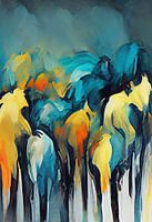 Dit werk, getiteld "Abstracte kudde paarden," vangt de schoonheid en dynamiek van een groep paarden in een abstracte stijl. De compositie is opgebouwd uit vloeiende lijnen en kleuren die de beweging en energie van de dieren suggereren. De combinatie van aardetinten en zachte nuancen creëert een harmonieuze uitstraling, terwijl de abstracte vormen ruimte laten voor interpretatie. Dit werk straalt een gevoel van vrijheid en kracht uit, perfect voor liefhebbers van paarden en moderne kunst. Het kan een inspirerende en levendige toevoeging zijn aan elke ruimte.