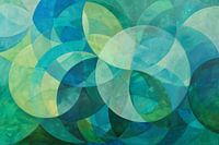 Dit fascinerende schilderij maakt indruk met een harmonieuze compositie van overlappende cirkels in rustgevende blauw- en groentinten. De vloeiende overgangen en geometrische precisie creëren een gevoel van diepte en beweging dat elke kamer visueel verbetert. Dit kunstwerk is perfect voor elegante woonkamers of moderne kantoren en brengt een ontspannen maar dynamische sfeer in je omgeving. Ideaal voor kunstliefhebbers die houden van hedendaagse en abstracte kunst.