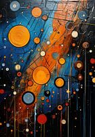 Schilderij: abstract schilderij in zwart, oranje, blauw en rood.
