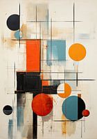 Schilderij: Abstracte afbeelding in beige, zwart, oranje en rood.