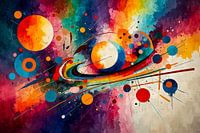 Dit is een digitaal kunstwerk van abstracte cirkels in felle kleuren. Een modern, vrolijk en kleurrijk schilderij geschikt voor elke ruimte.