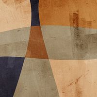 Abstracte vormen in diepe, rijke, warme retro kleuren: verbrand oranje, terracotta, roestbruin, olijfgroen, inktblauw en zand.