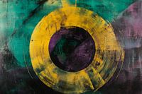 Een dynamische combinatie van helder geel en diep paars trekt de aandacht en creëert een fascinerend kleurenspel. De cirkelvormige structuur straalt een harmonieuze balans uit die zowel energie als rust uitstraalt. Perfect voor een creatief kantoor of een moderne woonkamer waar inspiratie voorop staat.