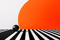 Dit ontwerp combineert de eenvoud van minimalistische vormen met een opvallend kleurcontrast. De grote oranje halve cirkel lijkt op een ondergaande zon, terwijl de zwarte bol op gestreepte lijnen een sterk visueel accent toevoegt. Het strakke ontwerp maakt het ideaal voor moderne interieurs en ruimtes waar creativiteit en rust…