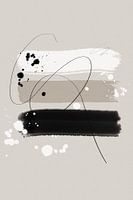 Serie van abstracte kunstwerken met als basis kleur beige / zandkleur, zwart en wit. Mooi te combineren. De werken verbinden elkaar door verfstrepen, verfspetters en lijntekeningen. Mix en match.