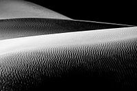 Abstract beeld van een zandduin in de Grote Zoutwoestijn in Iran. De lijnen, structuur, vorm en schaduw zorgen voor een kunstzinnig beeld. In zwart-wit.