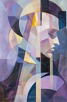 Deze indrukwekkende geometrische afbeelding van een vrouw betovert met een harmonieus kleurenpalet van koele pasteltinten. De veelzijdige vormen en strakke lijnen voegen diepte en complexiteit toe aan de afbeelding, terwijl de zachte blauwe, paarse en beige tinten een rustgevende en toch dynamische sfeer creëren. Ideaal voor moderne…
