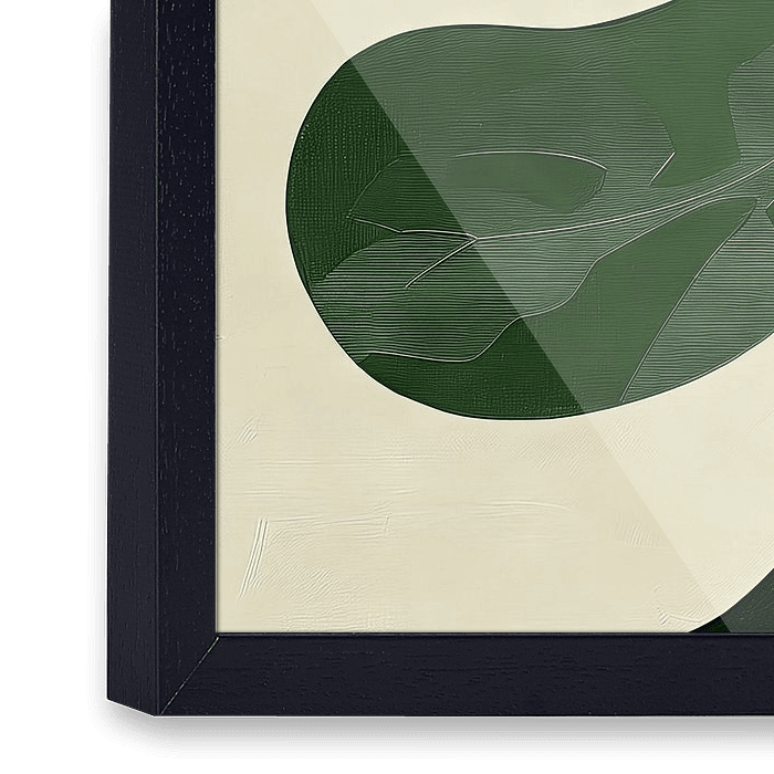 Dit abstracte kunstwerk maakt gebruik van gebogen lijnen en vloeiende vormen in verschillende tinten groen. De golvende patronen creëren een dynamische beweging en geven de afbeelding een levendige energie.