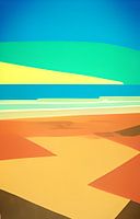 De kustlijn van Domburg in abstracte vormen en kleuren.