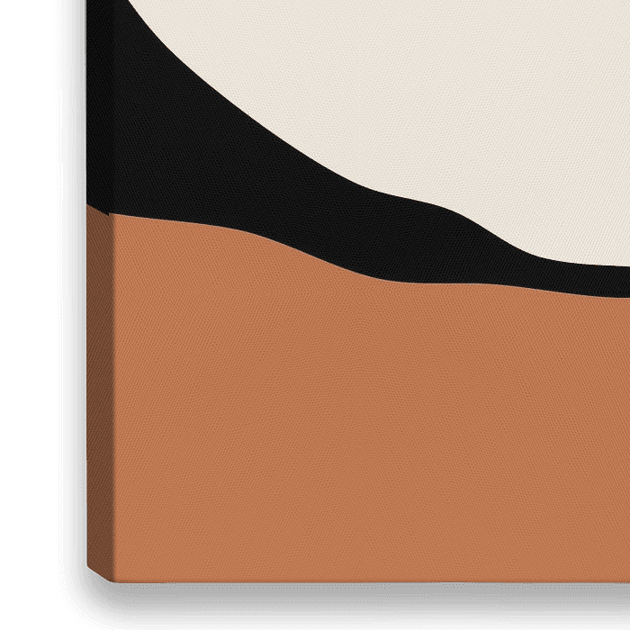Abstracte minimalistische illustratie van lagen in onder andere beige, zwart en terracotta kleuren. De achtergrond is licht beige.
