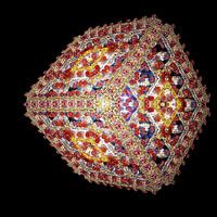 Abstracte lichtgevende kubus met vele kleine kubusjes op het oppervlak. 3D fractal afbeelding, deel van een reusachtige fractal volgens de Mandelbrot vergelijkingen, berekend met het programma Mandelbulb 3D.