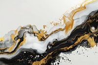 Ontdek de charme van een kunstwerk dat eenvoud en luxe verenigt. Deze creatie met een gouden en zwarte abstracte vorm op een witte achtergrond trekt direct de aandacht. De elegantie in het ontwerp komt door de verfijnde lijnen en de speelse interactie tussen de kleuren. Het kunstwerk is een moderne interpretatie van abstractie, met een strakke uitstraling die iedere ruimte opwaardeert. Het gouden accent voegt een vleugje grandeur toe, terwijl het zwart en wit een tijdloze balans vormen. Dit kunstwerk biedt een subtiele maar krachtige esthetiek, perfect voor het verfraaien van elke muur en het creëren van een stijlvolle sfeer in je interieur.