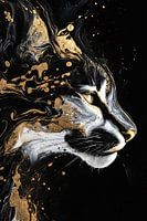 Dit indrukwekkende kunstwerk toont een abstracte lynx tegen een diepzwarte achtergrond, waar gouden en witte accenten zich sierlijk vermengen om een gevoel van beweging en dynamiek te creëren. De lynx, met scherpe contouren en expressieve ogen, straalt kracht en mysterie uit, terwijl de spatten van goud een vleugje luxe en elegantie toevoegen aan het geheel. Het samenspel van de donkere en lichte kleuren zorgt voor een sterk contrast, waardoor dit kunstwerk een opvallend en uniek stuk is dat in elke moderne interieurstijl past. Perfect voor ruimtes zoals een kantoor of slaapkamer, waar het een statement maakt zonder de ruimte te overheersen. Een waar kunstwerk voor liefhebbers van abstracte en moderne kunst.